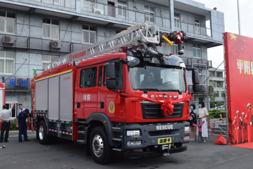 演示結束后,鎮(zhèn)政府各級領導及平陽縣大隊領導來到新購的舉升搶險主戰(zhàn)消防車前,詳 細參觀、了解消防車輛技術性能,觀摩了新型消防車輛器材的展示和車輛各種功能操作 演示,并對我公司研制的新產(chǎn)品進行了點評,給予了高度的贊許,稱此款車型最大化的 滿足了老舊小區(qū)、狹窄街道、城鄉(xiāng)低建筑物等滅火救援工作的需要。